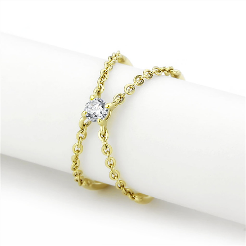 CJE3627 Wholesale Women's Stainless Steel IP Gold AAA Grade CZ Clear Chain Link Ring