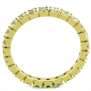 This ethereal eternity band is an excellent option for anyone looking to add some glamour into their look without looking overly flashy. This quality eternity band features an 18k gold plated IP band atop a stainless steel base. This ring also features brilliant round CZ stones around its entire band for a sparkling touch.