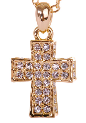 This glamorous cross pendant necklace is an ideal piece for Christians of any denomination. This piece is composed of 18k yellow gold plating and genuine Swarovski Elements crystal pave. Wear this piece for your favorite revenant occasions such as Christmas and Easter.