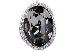 This dazzling abstract pendant is perfect for any special occasion. This rhodium plated pendant is cut assymetrically giving it a unique feel. This pave Swarovski Element crystal lining makes it extra glamorous and dressy for any occasion.
