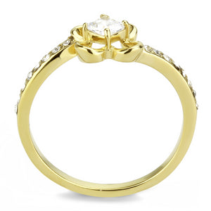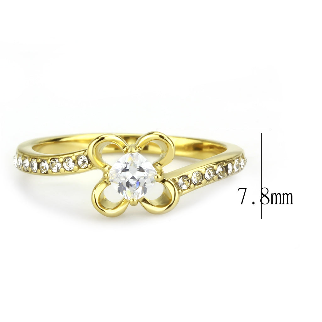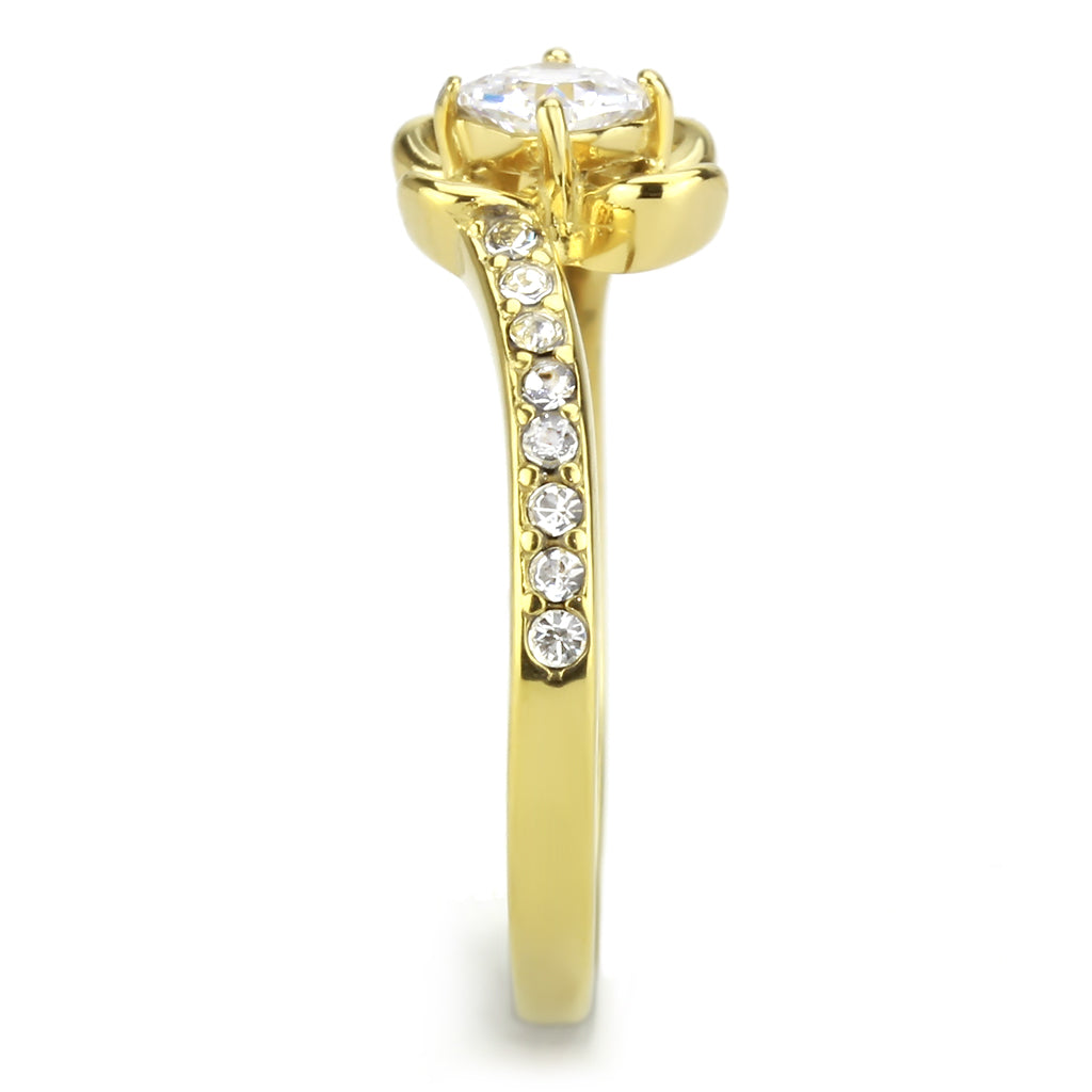 CJ3711 Wholesale Women's Stainless Steel IP Gold AAA Grade CZ Clear Minimal Solitaire Floral Design Ring
