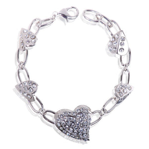 Fluttering like the beat of her heart this stunning heart bracelet features dozens of sparkling Swarovski crystal pave atop a high polished rhodium setting. The ultimate bracelet for almost any occasion including Valentine's Day.