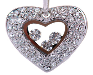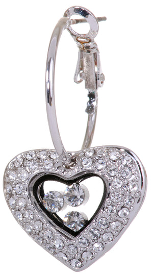 These stunning heart shaped earrings offer something different for any hopeless romantic. These earrings are composed from shiny rhodium-plated metal and feature a drop heart that is accented with Swarovski Elements pave crystals. Each piece features three brilliant round Swarovski Elements crystals that bounce around with whimsical movement