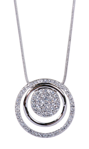 N7183 Rhodium Swarovski Triple Circle Pendant Necklace