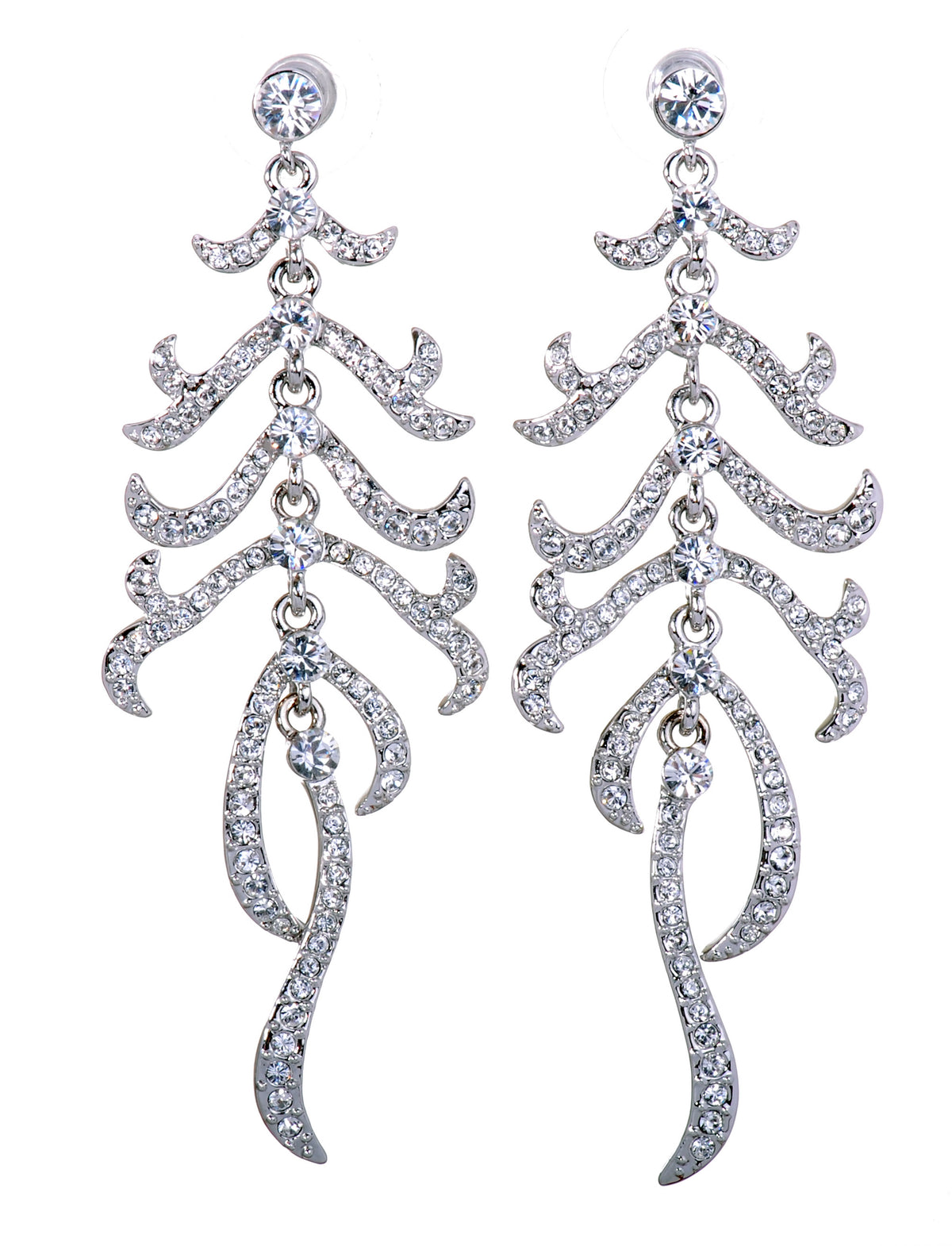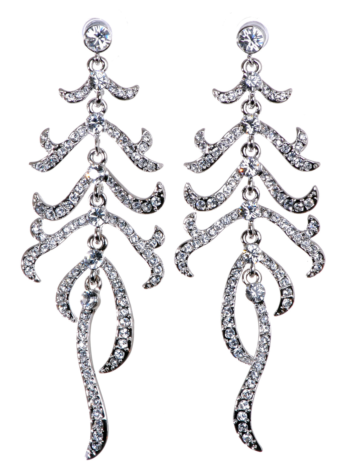 These intricate leaf earrings are an elegant solution to a conventional chandelier style earring. This drop style is the perfect solution for evening looks when you want to add a little sparkle into your wardrobe. Each earring is composed from high polished, rhodium plating and genuine Swarovski Element pave.