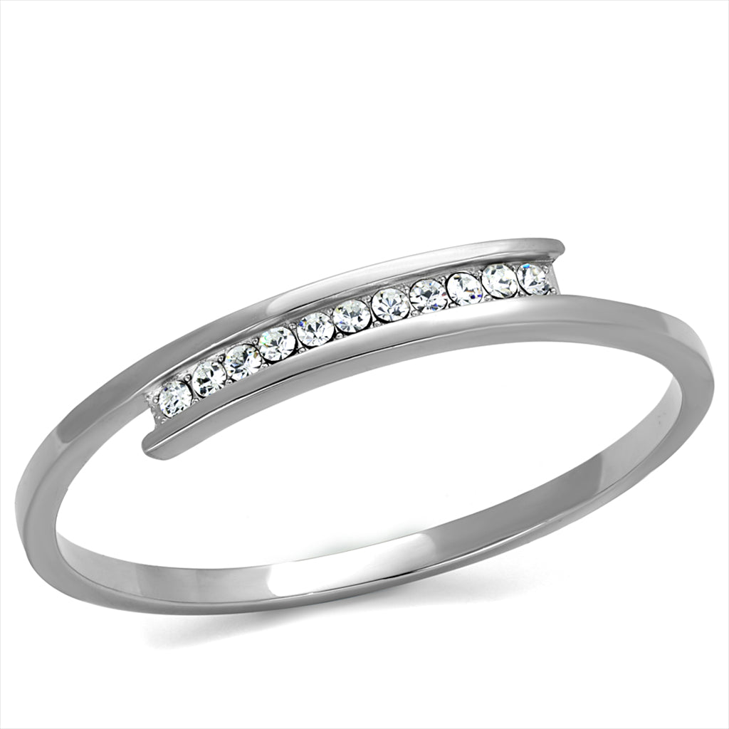 This elegant stainless steel bangle features a slim row of top grade crystal pave for an elegant look that can be paired with an everyday look or dressed up for a night out. This stunning bracelet is composed of high polished stainless steel for quality that will last many years to come.
