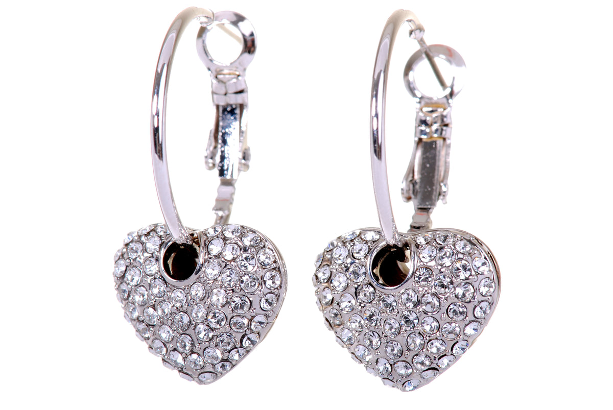 This dazzling arrangement of Swarovski Elements crystals make a unique heart design composed of Rhodium plating. This pair of ornate earrings is ideal for any occasion and would also make a wonderful gift for any special lady.