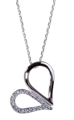 This stunning heart motif necklace is composed of high polished rhodium plating and boasts a beautiful arrangement of genuine Swarovski Elements pave. This stunning piece is an excellent option for casual looks or even formal dinners. The possibilities are endless with this gorgeous piece.