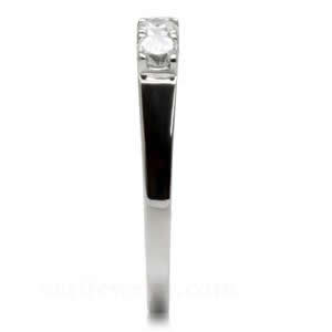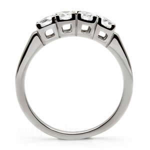 Stainless Steel Four Stone Prong Set Cubic Zirconia Wedding Band, features a round cut faux diamonds.Stainless steel jewelry is durable and does not tarnish. Not only is stainless steel one of the strongest metals, it also does not oxidize. Stainless steel jewelry can be easily cleaned with warm water and a clean cloth, thus forgoing purchasing expensive jewelry cleaners. In addition, those who are allergic to nickel can wear stainless steel jewelry as it is a hypo-allergenic product.
