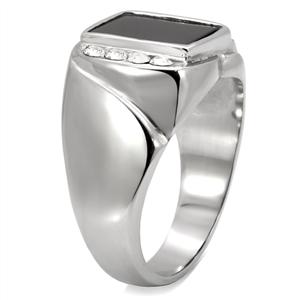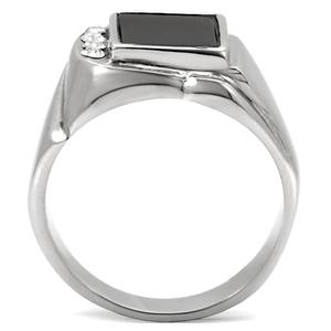 Radiate manliness with this elegant jewelry art. Sitting gracefully atop a stainless steel band is a black semi-precious jet stone. Simple with a touch of elegance. Stainless steel jewelry is durable and does not tarnish. Not only is stainless steel one of the strongest metals, but it also does not oxidize. Stainless steel jewelry can be easily cleaned with warm water and a clean cloth, thus forgoing purchasing expensive jewelry cleaners. In addition, those who are allergic to nickel can wear stainless steel jewelry as it is a hypo-allergenic product.