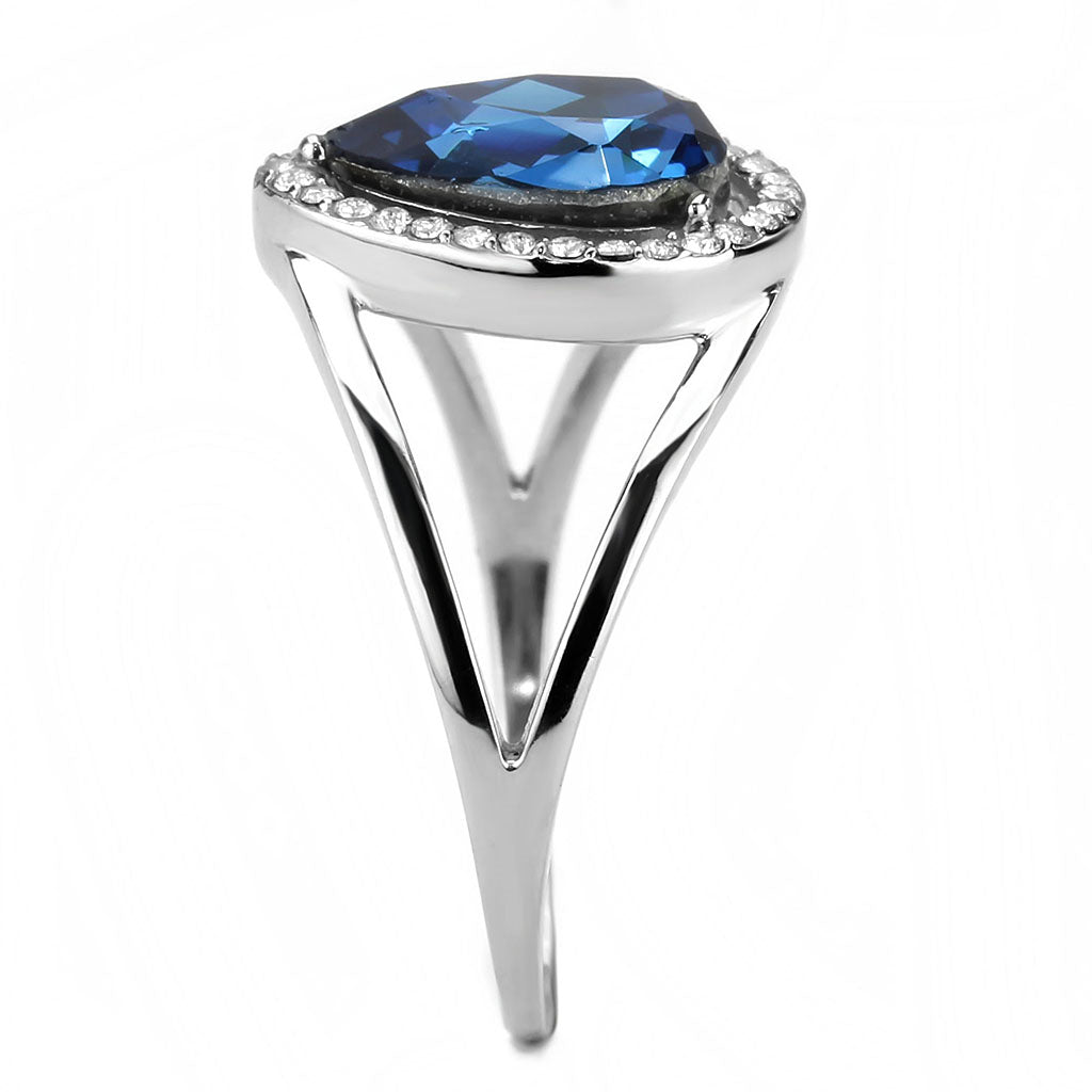 CJ349 Wholesale Women's Stainless Steel Top Grade Crystal Montana Pear Cut Engagement Ring