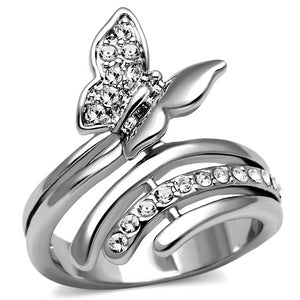 This butterfly fashion ring features a uniquely designed band that gives the illusion of stacked rings, and brilliant triple-A grade cubic zirconia crystal accents.