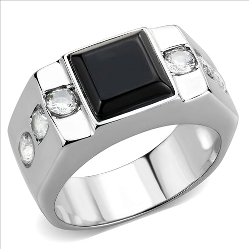 Category: Ring Gender: Men Material: Stainless Steel Plating: No Plating Finishes: High Polished Center Stone Name: Onyx Center Stone Color: Black, Jet Center Stone Size: 8,8(mm) Stone Cuttings: Square Weight(approx): 7.40(g)