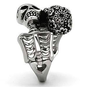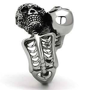 A stoneless stainless steel women's fashion ring with two skeletons.