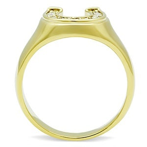 CJG1405 Wholesale Gold Plated Stainless Steel Channeled CZ Horseshoe Ring