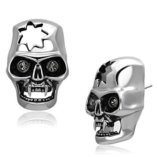 It does not have to be Halloween to wear these edgy earrings! Each piece features a vampire skull with fangs and clear tops grade crystals for its eyes.