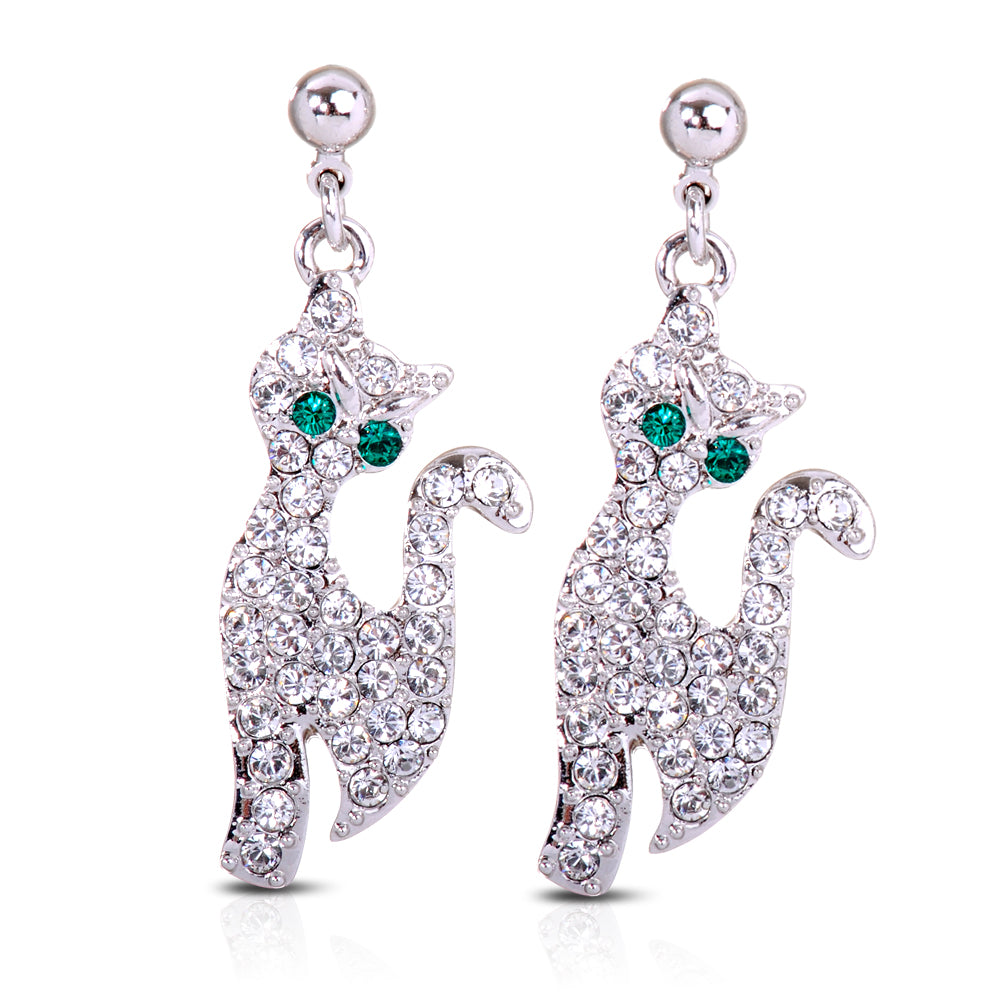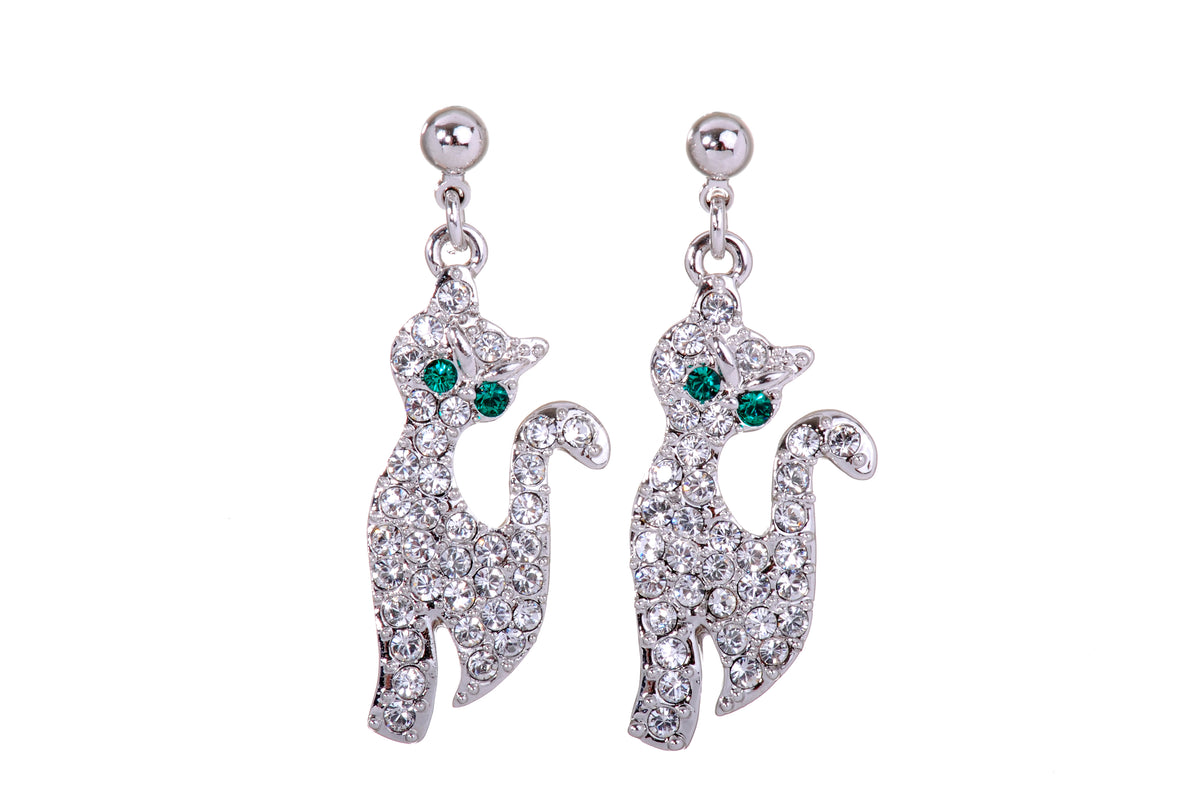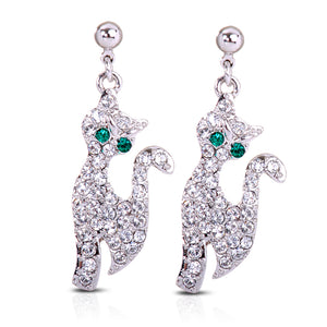 E7151 Parisian Chic Cat Rhodium Plated Swarovski Elements Crystal Earrings