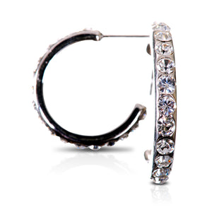 A half hoop pair of earrings is a must-have for every woman. This gorgeous pair features channel-set Swarovski Elements crystals atop a rhodium-plated setting.